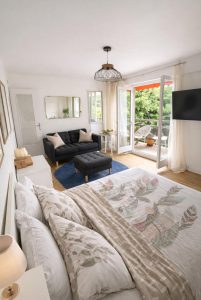 Confort « King size » : Une chambre spacieuse dotée d’un lit King Size (160×200) avec une literie de haute qualité pour des nuits d’un calme absolu.